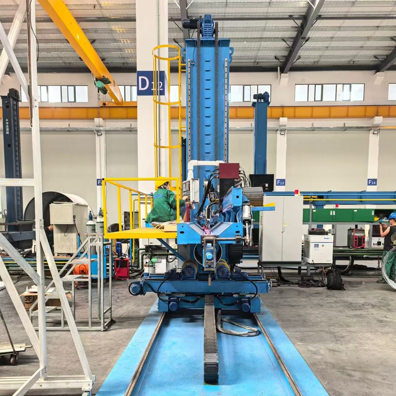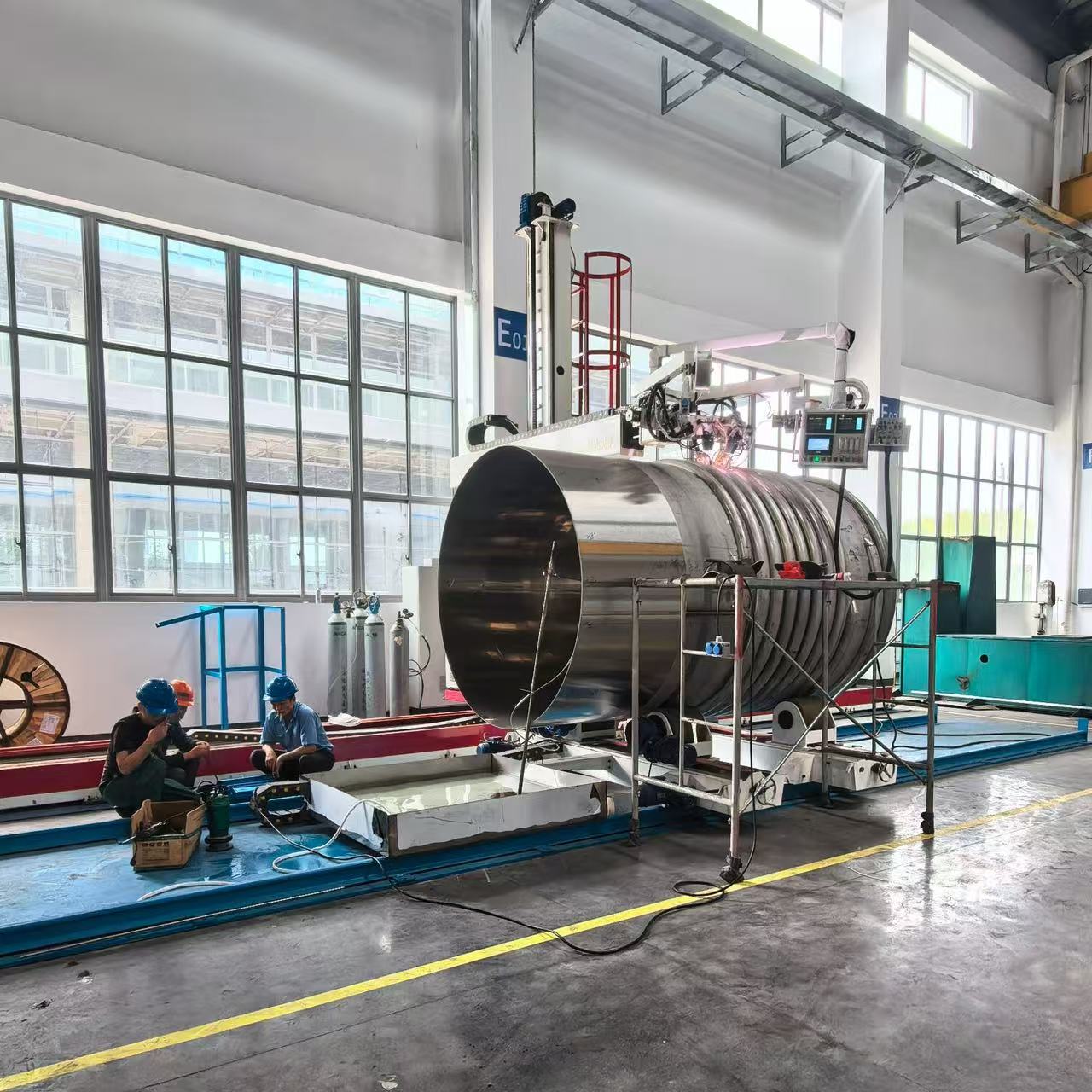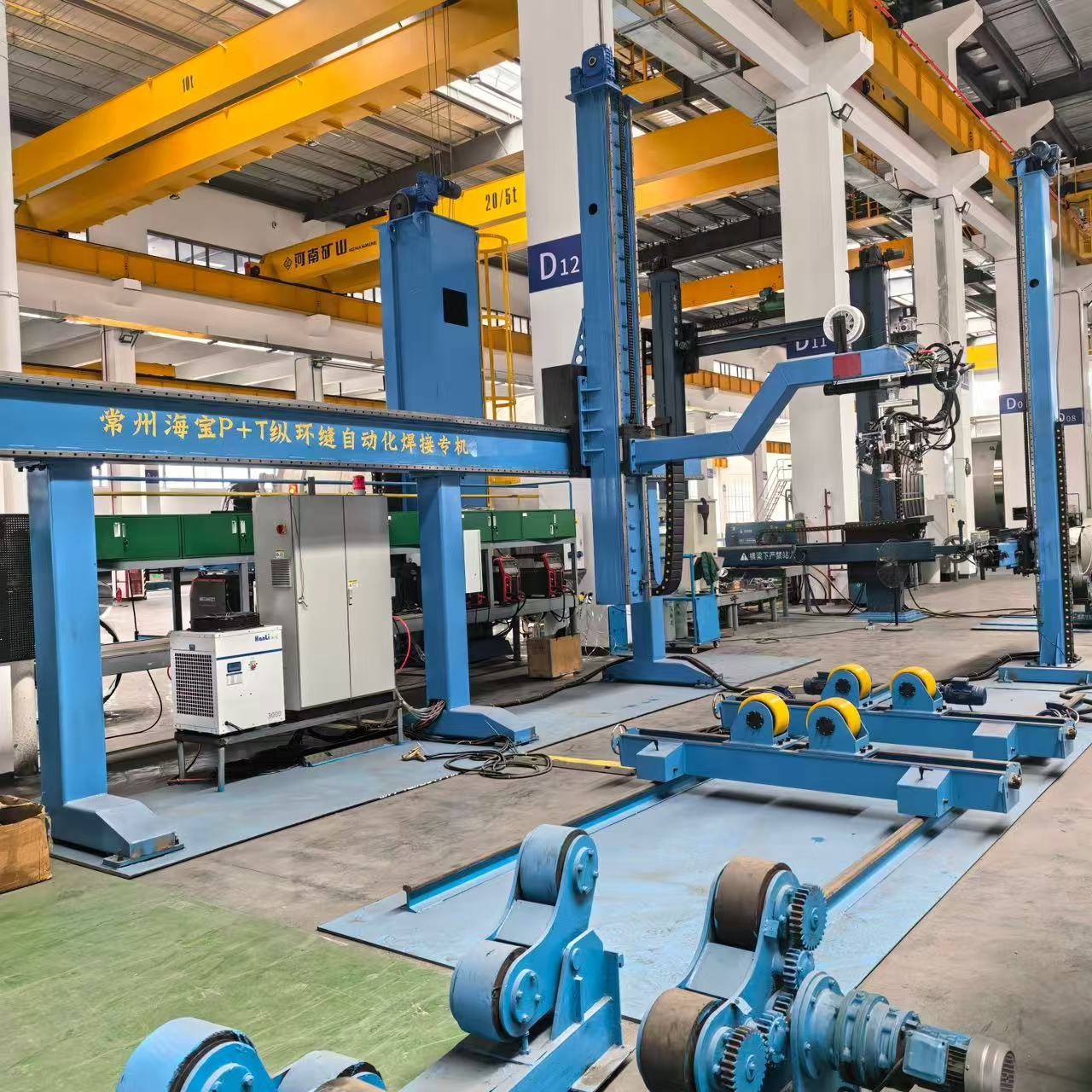 Installations designed for cladding in a vertical position (2G) are usually dedicated to perform cladding operations on cylindrical parts. In most cases the workpieces are positioned on a turntable or positioner. However, there are other, much more complex scenarios, where it is impossible to set the workpieces in motion, either due to their size and weight, or quite simply because of their geometry (e.g. eccentric bore holes or nozzles). A group of endlessly rotating collector welding and cladding heads, with torches which can be rotated without twisting the cable/hose bundles, has been specifically designed for such situations. These machines handle cladding operations on fixed workpieces with a high level of automation.